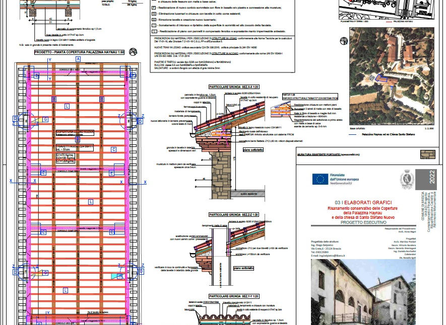 L'intervento riguarda la copertura di alcuni edifici adiacenti tra di loro ubicati all'interno del Castello di Brescia e più precisamente l'edificio chiamato "ex Chiesa di S. Stefano nuovo" e la Palazzina Haynau.